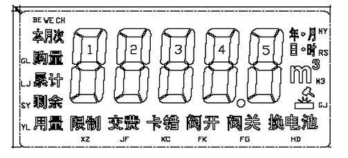 “本次購量”,“剩余用量”,“累計用量”,“閥關”,“閥開”,“交費”,“限制本次購量”,“卡錯”,“攻擊”,“換電池”,“E-01[EE錯]”,“E-03[受磁攻擊]”,“E-07[內部電池電壓過低]”。