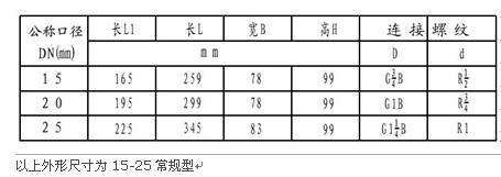 | 口徑(DN)mm | 純水表 | 15 | 20 | 25 |