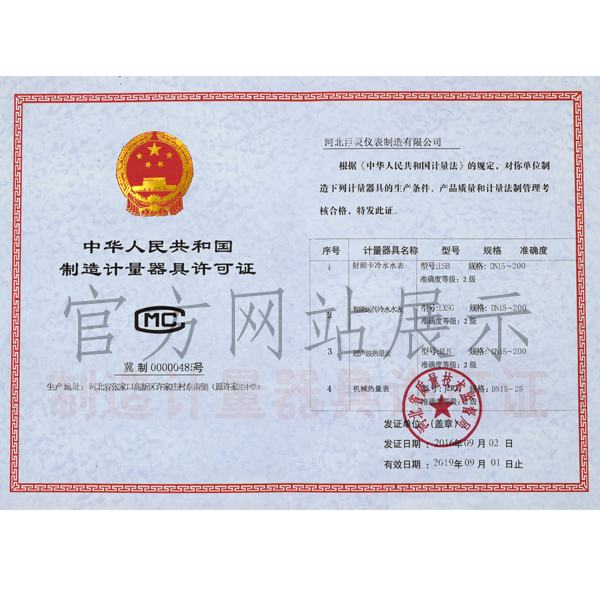 我公司已經獲得中華人民共和國制造計量器具許可證。圖如下